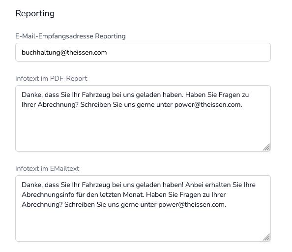 Abrechnungsbeleg: Mailadresse und Texte einstellen
