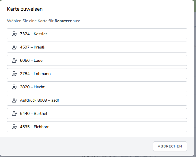 Die erfolgten Kartenzuordnungen werden in der Benutzerliste angezeigt: