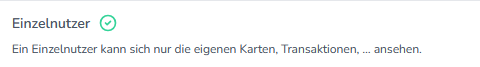 Wenn einem Benutzer mit der Rolle Einzelnutzer keine Karten zugeordnet sind, kann er im Backend auch keine Transaktionen einsehen.