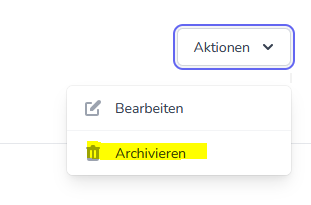 Wenn ein Debitor nicht mehr benötigt wird, kann er archiviert werden. Wenn ein Debitordatensatz angewählt ist, findet sich unter Aktionen die entsprechende Funktion: